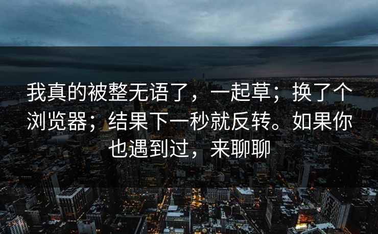 我真的被整无语了,一起草;换了个浏览器;结果下一秒就反转。如果你也遇到过,来聊聊