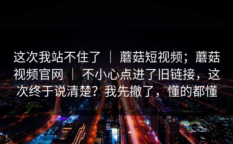 这次我站不住了 | 蘑菇短视频;蘑菇视频官网 | 不小心点进了旧链接,这次终于说清楚?我先撤了,懂的都懂