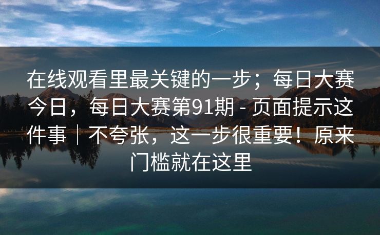 在线观看里最关键的一步;每日大赛今日,每日大赛第91期 - 页面提示这件事|不夸张,这一步很重要!原来门槛就在这里