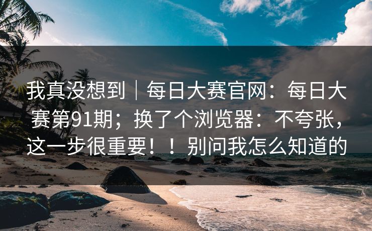 我真没想到|每日大赛官网:每日大赛第91期;换了个浏览器:不夸张,这一步很重要!!别问我怎么知道的