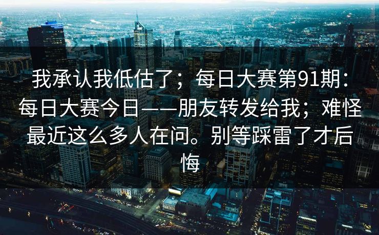 我承认我低估了;每日大赛第91期:每日大赛今日——朋友转发给我;难怪最近这么多人在问。别等踩雷了才后悔